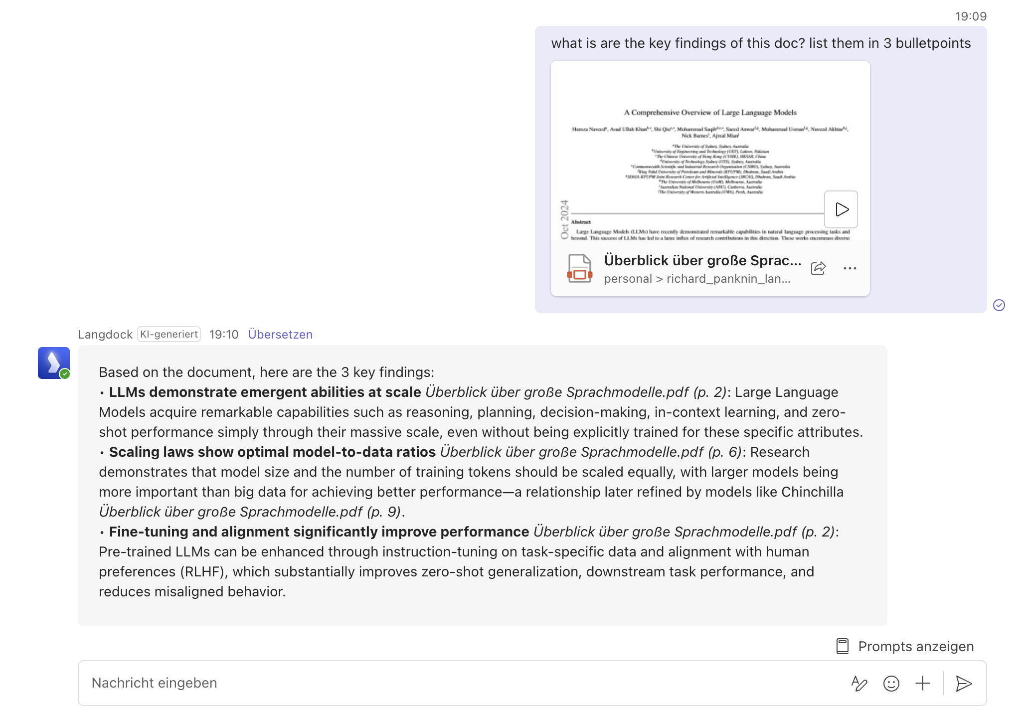 - You can discuss something with colleagues first, then pull in @Langdock later with full context