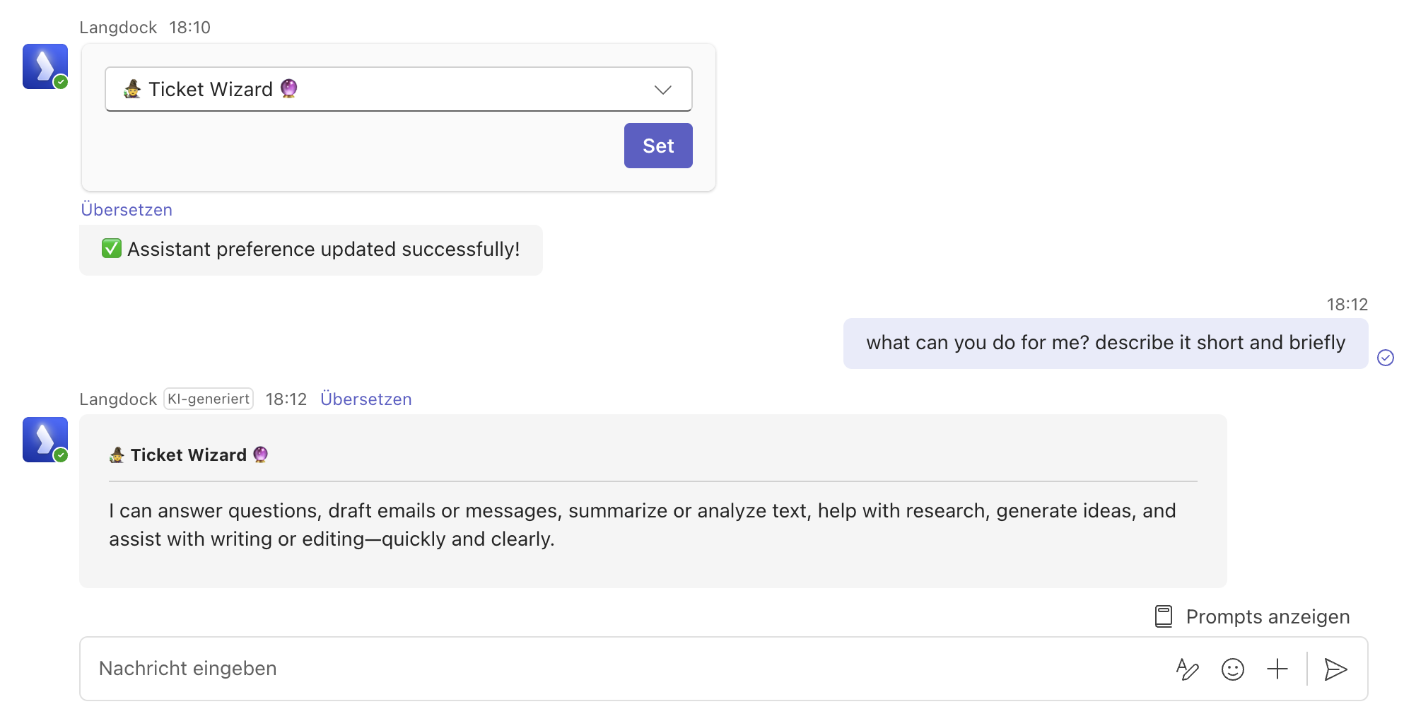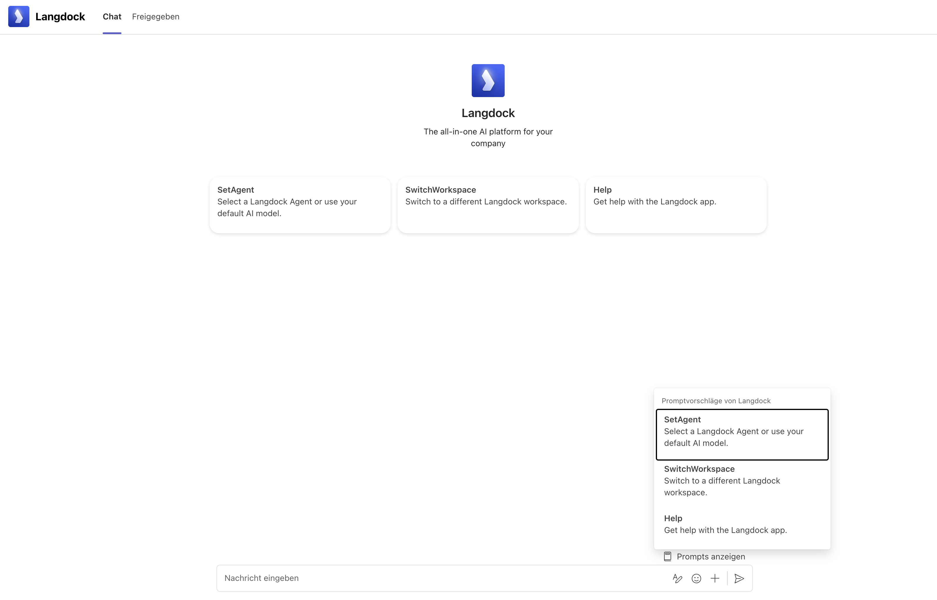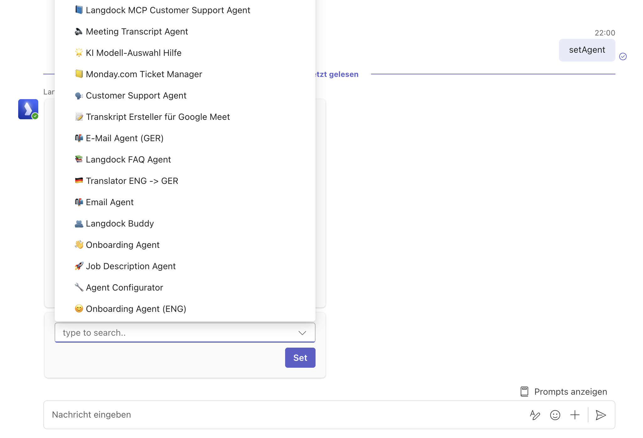 | SetAgent | Select a Langdock agent |
